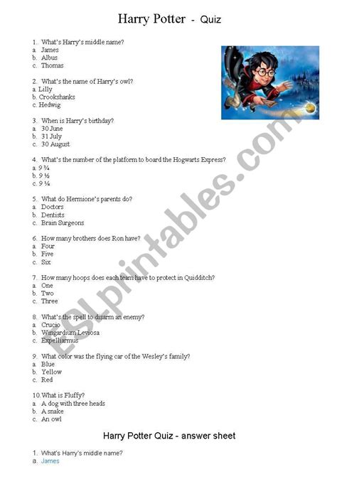 Printable Harry Potter Quiz Questions And Answers Printable Questions