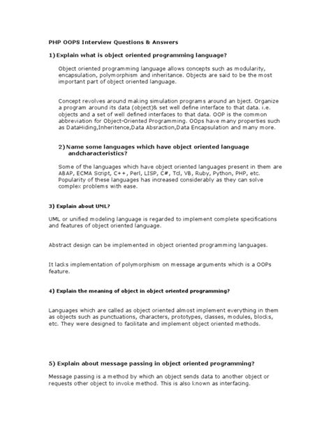 Php Oops Interview Questions And Answers For Experienced Pdf Download - Questions & Answers