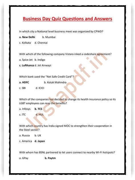 Quiz Questions With Answers Related To Business - Quiz Questions And Answers